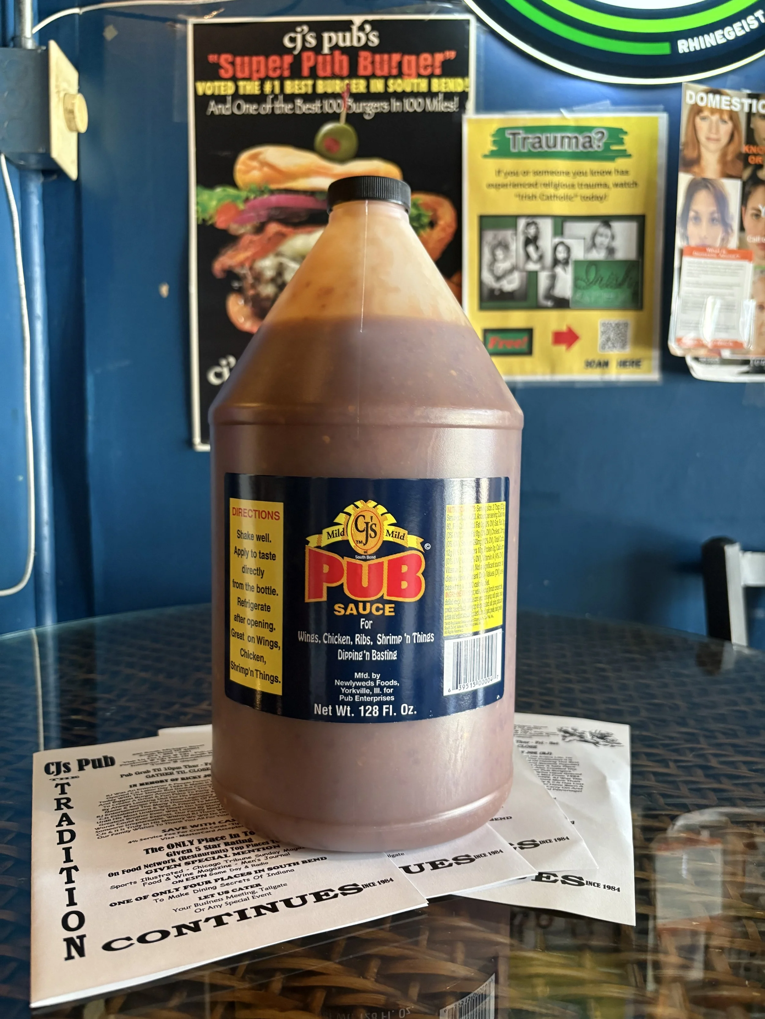 Categories: Sauce Gift Cards Sauce CJ's Famous Pub Sauce Sauce | Gift Cards | Sauce | CJ's Pub Sauce Mild- One Gallon Bottle $20.00 CJ's Pub Sauce Mild- Full Case (12 bottles) $60.00 CJ's Pub Sauce Mild- Half Case (6 bottles) $30.00